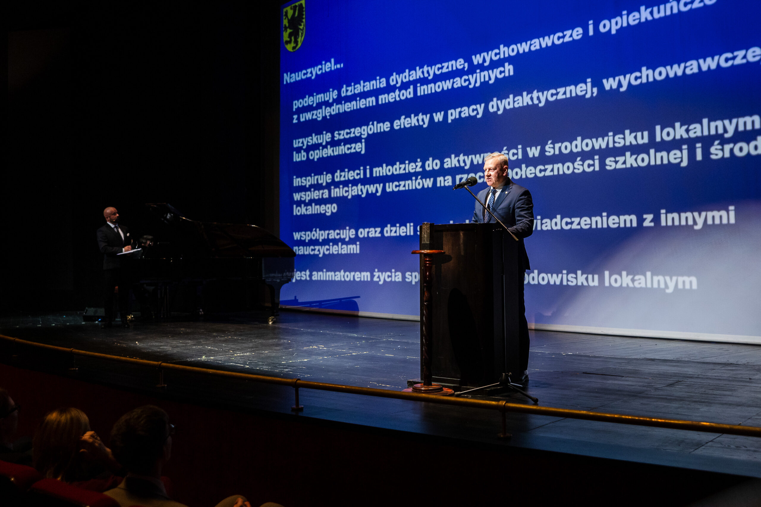 Barbara Nowacka, Ministra Edukacji, przekazała gratulacje i życzenia, które w jej imieniu odczytał przybyły na uroczystość Szef Gabinetu Politycznego ME – Bartłomiej Plewczyński.