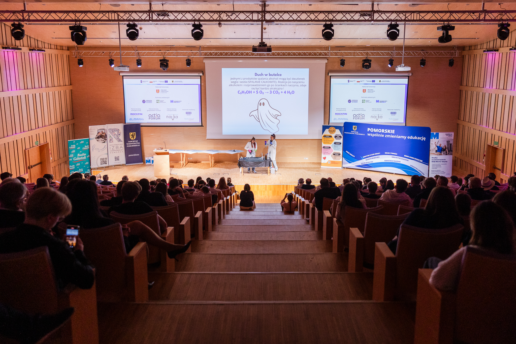 Uczestnicy mieli również okazję zobaczyć efektowny pokaz przygotowany przez szkolne koło chemiczne, który w ciekawy sposób połączył naukę z praktyką i spotkał się z dużym zainteresowaniem publiczności.